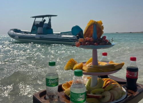 Schwimmen Sie mit Delfinen und schnorcheln Sie im kristallklaren Wasser des Roten Meeres, bewundern Sie farbenfrohe Korallenriffe und unglaublich farbenfrohe Fische. Entspannen Sie am weichen, weißen Sandstrand, schwimmen Sie an den besten Schnorchelplätzen und genießen Sie ein köstliches Mittagessen auf der Insel